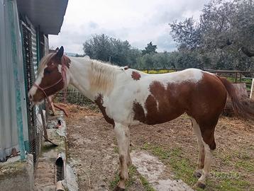 Cavalla Paint di sei anni porta a sella per cavalieri di media esperienza
