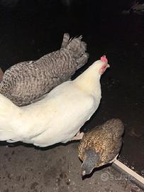 Disponibili animali da cortile di diverse razze ed età, tra cui moroseta, pavoni, cocincine nane, livornesi bianche, araucana, incroci con araucana che depongono uova azzurre e verdi, oche cignoidi maschi giovani, incroci sebright-serama, conigli di tutte le età, sia maschi sia femmine