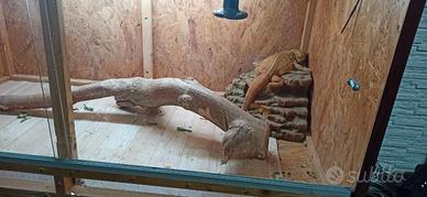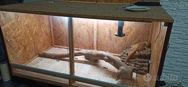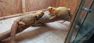 Vendo terrario completo di riscaldamento luce e temporizzatore per il caldo comprese di 2 pogone o draghi barbuti di circa 4 anni. Animali docili da tenere in mano.