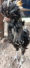 Vendo galli padovani 4 mesi. Animali in salute e di razza pura. La colorazione argento è ben uniforme in tutto il piumaggio dell'animale.