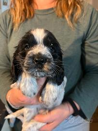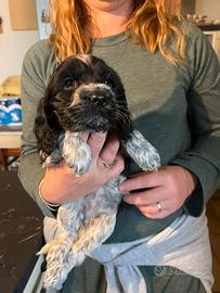 Disponibili cuccioli di Cocker Spaniel nati il 03/03/2026.Sono 1maschio e 1 femmina neri,la femminuccia nera ha il nasino screpolato perché I fratellini la mordicchiano per giocare. 2 maschietti fulvi e 1 maschio e 1 femmina bianco e nero. Si danno già sverminati e con la prima vaccinazione. Genitori visibili. Prezzo trattabile.