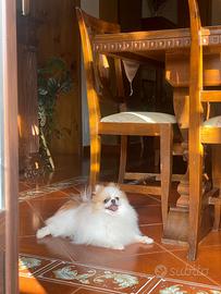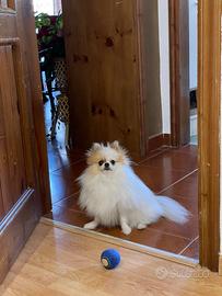 Lui si chiama Simba, ed è uno Spitz di Pomerania nano, pesa 1,5 kg. Colore del mantello particolor , difficile da trovare. Alta genealogia con ovviamente pedigree Enci. Solo per Monta/accoppiamento. Per altre info contattatemi.