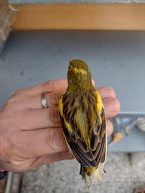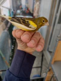 Vendo canarino spagnolo maschio anno 2025 /ho scambio alcon una femmina Bianca ho mosaico giallo