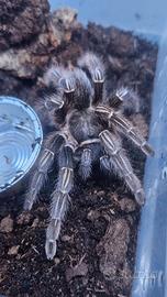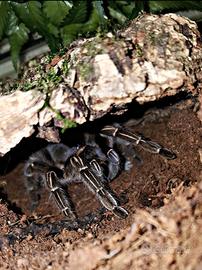 tarantola zebra costaricana, è una specie di ragno terrestre originaria dell'America Centrale, apprezzata per le sue strisce bianche sulle zampe scure, che la rendono popolare nell'allevamento amatoriale, È considerata adatta ai neofiti, docile e con un morso innocuo per l'uomo. Cedo esemplari subadulti €40 cad. Per maggiori info, foto e video scrivetemi in privato. È una migale di libera detenzione non in CITES