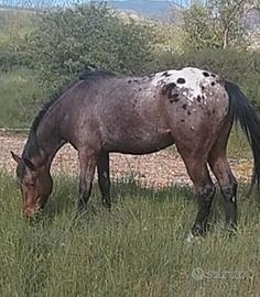 Appaloosa di tre anni,maschio intero, ha già fatto qualche monta e i figli vengono tutti colorati. Il padre è palomino con coperta bianca (bollino oro) la madre totalmente pomellata.. In regola con i documenti...