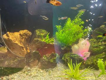 Vendo bellissima Aquario. Piante vive rocce vive tronco vivo filto interno e con impianto luce automatico prezzo trattabile rispondo su whatsapp e tramite email