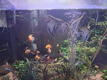 Come da titolo cedo aquario misure 100x 60 di altezza x55 di profondità , spessore vetro un centimetro ,perfetto ,esente da graffi !conpreso di mobiletto , completo con due filtri uno interno e uno esterno cavetti riscaldanti con scarico automatico ( che si può escludere ) con piante e pesci di varie spece ( contattatemi x maggiori informazioni ,legermente trattabile .