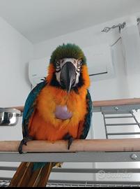 Vendo ara ararauna di 4 mesi allevato a mano da imbecco in fase di svezzamento docile abituato al contatto umano. Anellato e con documento cites