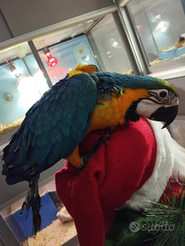 Disponibile dolcissima e meravigliosa cucciola di ara arauna allevata a mano molto docile abituata al contatto umano razza molto intelligente e chiacchierarona con documenti cites e anellata possibilità di trasporto in tutta Italia con trasporto autorizzato 3288990090