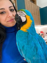 Pappagallo parlante pullo da imbecco allevato a mano anellato e con cites sessaggio e test virali. Ara arauna perfettamente docile e tranquillo, per tutte le info 3927541831