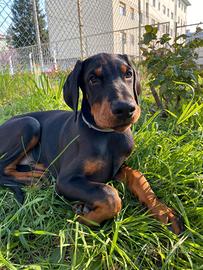 Vendo dobberman 3 tre mesi con pedigree passaporto e e libretto sanitario con due vaccini microcipato preso in alevamentosan marino.richiesta1500 come lo pagato.lo venso per motivi di salute.noperdi tempo seria.il cane sta bene e e educato.lasciorecapito 3519725753