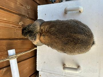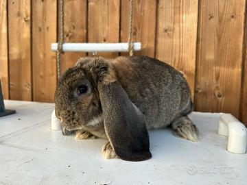 A breve disponibile cucciolata di conigli ariete gigante in colorazione grigio lepre. Accetto prenotazioni. Per eventuali info contattatemi al 3661512197.