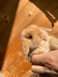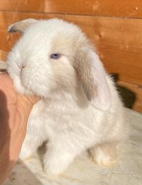 Conigli minilop peso da adulti max 1,5 con occhi azzurri di 60 giorni completamente sverminati e con trattamento anticoccidiosi no perditempo rispondo solo a chiamate prezzo da €80 a 120 in base al colore