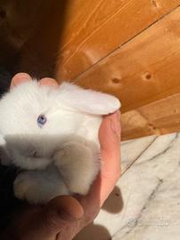 Conigli minilop con occhi azzurri di 50 giorni completamente sverminati e con trattamento anticoccidiosi no perditempo rispondo solo a chiamate al 3898745545 disponibili bianco blu e bianco