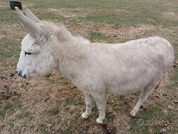 Mantello bianco, molto brava, nata a febbraio 2016. Dotata di libretto/passaporto, Coggin test e passaggio di proprietà compresi nel prezzo. L'asinella è alta circa 100 cm, al garrese. asine asinelli asino asini