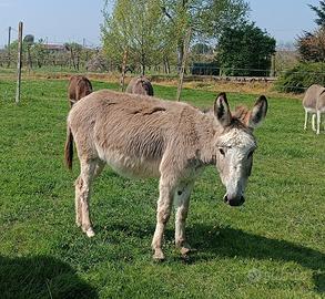 Vendo asina pezzata di 3 anni con documenti. Altezza al garrese circa 95 cm. Non abbiamo possibilità di trasporto