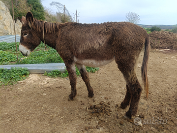 Asina Ragusana con documenti di razza, l'asina è alta al garrese cm 145, porta a sella è tira il calesse, e' gravida di uno stallone ragusano. Molto brava non scalcia e non morde qualsiasi prova. Prezzo E 1750. Per info tel. 3381814483