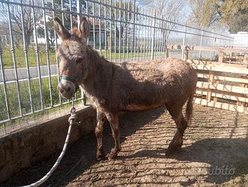- Asina Sarda di circa 1 metro e 10 al garrese - Età: quasi 16 anni (dicembre 2010) - Domata a sella: sia monta inglese che monta americana. Negli ultimi anni abituata alla monta americana, ferma da qualche mese. Precedentemente in fase di avvio a calesse. - Asinella in salute, abituata ad essere maneggiata, strigliata e coccolata - Non calcia e non morsa, si fa tagliare/pareggiare le unghie, non ha paura di nulla: macchine, trattori,... - Passaporto APA - NON DPA, no macello e no commercianti - Ottima per prime messe in sella, per passeggiate e per bambini - Verranno prese in considerazione solo proposte per una buona continuazione della vita dell'asinella, ok per compagnia, monta, passeggiate, bambini, agriturismi,...basta che vada a stare bene - Richiesta adeguata al soggetto. No perdi tempo, solo realmente interessati. Possibilità di richiedere foto/video dell'asinella con e senza sella - Noi ci troviamo in Provincia di Forlì-Cesena (Emilia-Romagna) e preferiremmo che restasse nei dintorni (in regione), ma valutiamo anche più lontano per una buona vita.... - Per qualsiasi informazione non esitare a contattarmi qui o al numero 3791577914