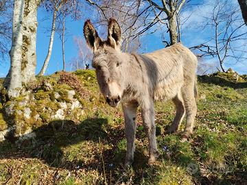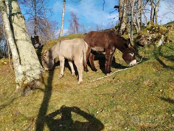 Vendo 2 asinelli il più scuro quasi due anni con microcip ottimo come futuro riproduttore taglia grande quasi 140cm al garrese nn calcia e nn morde abituato al recinto elettrico e alla conduzione con capezza. Quello più chiaro quasi un anno senza documenti nn calcia nn morde e anche lui abituato a recinto elettrico . Prezzo 650€ per lo scuro 450€ per il chiaro, possibilità di trasporto da concordare all'acquisto