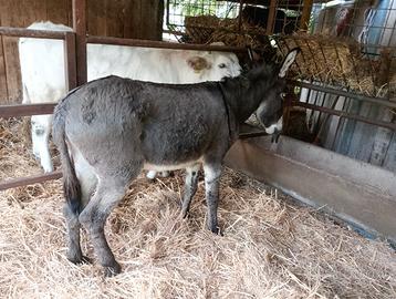Vendo asino maschio di 3 anni intero,manto grigio con croce,alto intorno al metro,bravo con tutti,no vizzi, documenti in regola con microchip e coggin,non dpa...vendo x esubero,no affaristi grazie...per info Pasquale 3351379713 €400