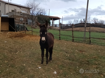 Vendo asino ragusano maschio, intero, di quasi 3 anni. Abituato a vivere con cavalli, capre e pecore. In regola con libretto e prassi sanitarie. Docilissimo con le persone, è stato preso da piccolo ed è cresciuto in contesto familiare.