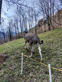 Vendo bellissimo Asino stallone, 8 anni, altezza 1,48 al garrese, macellabile. Trasmette manto grigio con croce S. Andrea.