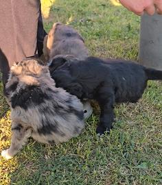 Bellissimi cuccioli figli di mamma Australian Shepherd, e papà meticcio , di due mesi, nati e cresciuti in famiglia, molto intelligenti e tranquilli di carattere!! Chiediamo un minimo rimborso per poi sterilizzare anche la mamma. I cuccioli miele 120 , quelli merle 150 e i i tre neri 80 euro. Hanno libretto veterinario con vaccinazioni, sverminazioni e controllo della salute certificata dal veterinario , per ulteriori informazioni chiamare il 3296481678