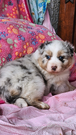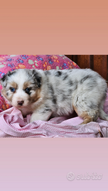 Cucciola pastore australiano blue merle a coda lunga ,occhi azzurri,si consegna da 28 dicembre con: