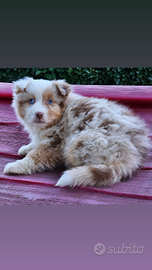 Cucciola pastore australiano red merle a coda lunga,occhi azzurri, di 80 giorni ,si consegna da subito con: