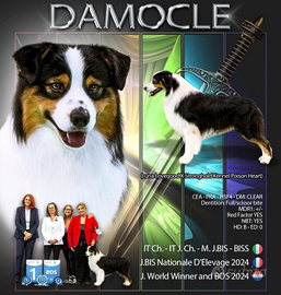Damocle è *Campione del Mondo 2024*, *Campione Italiano di Bellezza* e *Giovane Campione Italiano*: una linea di sangue *prestigiosa, riconosciuta e premiata*.
