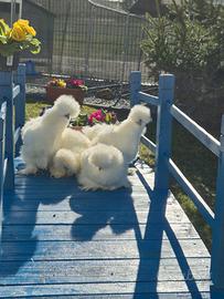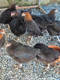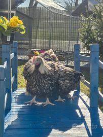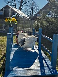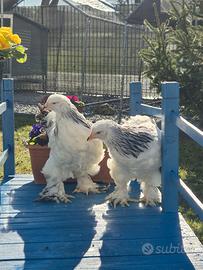 Soggetti di 6 mesi ancora Prenotabili per l open day di Maggio. Femmine: Araucane con ciuffi auricolari Brahama Faverolles Giganti Faverolles nane Livorno collo oro/argento Legbar Marans Oliver Orpington pern oro/argento Cocincine nane Moroseta Sussex Vorwerk Wyandotte Gigante Wyandotte nane Ayan Cemani. Maschi: Moroseta bianco Ayan Cemani Marans Araucane Per altre razze in base alla disponibilità. Su alcune razze le colorazioni verranno confermate intorno al 6 maggio (moroseta, cocincine, brahma) I prezzi sarà come al solito 40 le razze medio piccole e 50 le razze medio grandi