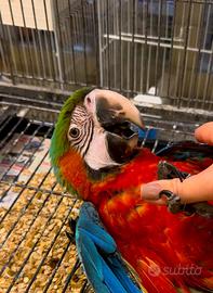 Meraviglioso ara Arlecchino allevato a mano dal carattere super docile e coccolone, nato in Italia, verrà consegnato sessato e testato per le principali malattie infettive.
