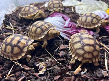 Baby testuggini sulcata africane, alimentate con Pellet Mazuri e fresco, fanno bagnetti settimanali, piramidalizzazioni totalmente assenti, carapace liscio e uniforme. Con regolare documentazione