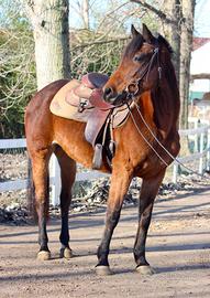 Cavalla baia di 9 anni, dal temperamento grintoso ma equilibrato, senza paure e molto affidabile.