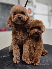 Vendesi disponibile da oggi stesso ultima della cucciolata barboncino mini toy Red femmina nata il 13 settembre. Genitori entrambi red di mia proprietà (nelle foto potete vedere la mamma ed una sorella che ho tenuto). Abituata alla traversina igienica e alla compagnia di altri animali sia cani che gatti. Viene ceduta con tre vaccini e il ciclo di sverminazioni completato. Il prezzo è 1900 trattabile. Per qualsiasi informazione o se siete interessati e volete vedere la cucciola contattatemi pure
