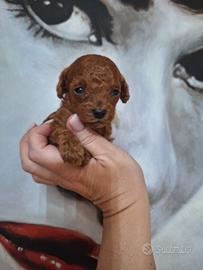 Strepitosa barboncina femmina mini toy red mamma 24 cm papà mini toy asiatico 21 cm . Le cucciole saranno ceduei a 80 giorni con doppio vaccino doppio svermio doppia visita veterinaria microcip termico di ultima generazione iscrizione anagrafe canina certificato di buona salute rilasciato dal veterinario pedigree alianz, test genici lablokin tutti negativi del padre ed e esame rotule patelle 00 ,kit cucciolo. Le cucciole hannoi dei caratteri eccezionali estremamente tranquille ed equilibrate come tutti i nostri cuccioli per la selezione fatta ,sono buonissime e dolcissime sono nate e cresciute in famiglia con tanto amore passione e sacrificio sono continuamente stimolate al gioco e alla socializzazione, coccolate e manipolate fin da piccolissime e questo le rende otre che bellissime degli esemplari top dal punto di vista caratteriale. sono abituate ai bambini agli altri animali . Sono dei veri gioielli. Per ulteriori informazioni potete contattarmi si predilige contatto telefonico.grazie