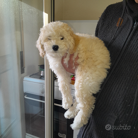 Disponibile barboncina di quasi 2 mesi colore albicocca/crema nata il 23 novembre 2025 da mamma silver 34cm e papà bianco 33cm.La cucciola e già svezzata e ha imparato ad andare sulla traversina, molto dolce e coccolona,cerchiamo per lei una famiglia che sappia soddisfare tutti I suoi bisogni .Sarà consegnata a fine gennaio