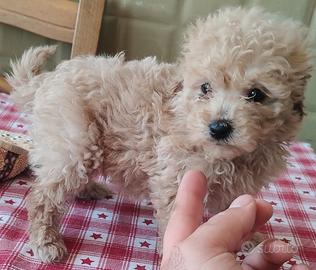 Disponibile femminuccia di barboncina toy limite nana albicocca chiara, cucciola nata e cresciuta in appartamento, genitori visibili in foto, verrà consegnata completa di tutto... Per maggiori informazioni lasciatemi un vostro recapito tramite email che sarete ricontattati il prima possibile.. Prezzo reale e non trattabbile.. Quindi solo realmente interessati grz.