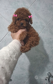 Cucciola di barboncina mini toy red colore uniforme e intenso attualmente 75 giorni ...pronta per essere ceduta con tutta la documentazione obbligatoria come microchip libretto vaccino sverminazione iscrizione anagrafe canina e passaggio di propieta e microchip genitori in foto papà mini toy teacup e mamma toy possibilità di vederla sul posto a Sant'Anastasia prov di Napoli oppure video wozzapp al 339 433 5887 rispondo anche a messaggi.