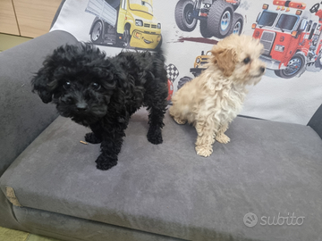 Sono due cucciole femmine di barboncino toy una albicocca l'altra nera hanno tre mesi ciclo vaccinale completo sverminate e pronte da subito. Abituate ha fare i bisogni nella traversina molto socievoli giocherellone e abituate in casa per altre foto e video contattatemi senza impegno. 3292590782