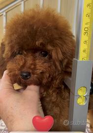 1-Romeo-disponibile bellissimo maschietto barboncino mini toy con pedigree Enci , 6 mesi, colore red, testicoli in sede, altezza a garrese 22 cm, peso 1,6 kg. Entrambi genitori con test genetici, deposito DNA.