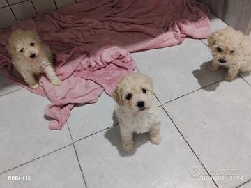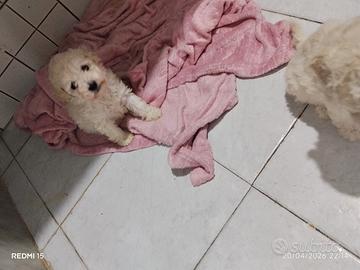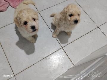 Salve,vendo mini cuccioli di barboncini Toy originali di 65 Giorni, già svezzati, sverminazione effettuata,anti parassitario inserito,colore crema o champagne,madre Red e padre miele, già abituati alle traverse,genitori di peso 1.800 kg,non perdono pelo,non creano allergie,ipoallergenici, disponibili 1 maschio e 2 femmine, astenersi perdi tempo,curiosi, richiesta non trattabile!