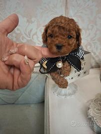 Barboncini purissimi mini e toy colore red intenso si cedono meta maggio con vaccino microchip visita veterinaria libretto sverminazione e passaggio di proprietà possibilità di trasporto in tutta italia si trovano in prov di napoli visibili sul posto oppure video wozzapp genitori in foto papà 1.700kili mini toy mamma toy per inf.339 4335887 anc wozzapp