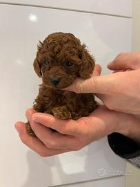 Disponibili, a partire dal 25/04/2026, cuccioli maschio e femmina di barboncino toy colore red con pedigree enci nati il 21/02/2026 in casa e cresciuti in famiglia. Verranno ceduti con sverminazioni, vaccino, microchip, libretto sanitario e visita medica di controllo. I genitori sono entrambi di nostra proprietà, sono visibili sia sul posto che per foto, sono provvisti di certificati per il controllo della lussazione delle rotule (risultate di grado 0) e di test genetici che assicurano l'assenza di malattie ereditarie comuni a questa razza (tutti negativi), quali: - Mielopatia degenerativa (DM) esone 2 - PCR; - Malattia di von Willebrand - Tipo I - PCR; - Encefalopatia neonatale (NEWS) - PCR; - Atrofia retinica progressiva (prcd - PRA) - PCR; - Atrofia retinica progressiva (rcd4 - PRA) - PCR. Al momento del ritiro sul posto consegneremo il kit puppy (comprende crocchette, pappette e traverse sufficienti per una settimana).