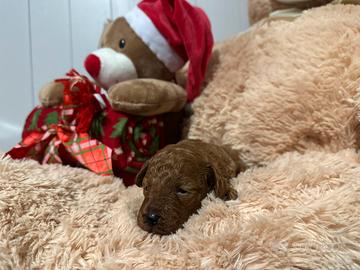 Disponibile alla prenotazione splendido cucciolo maschietto di barboncino red con mamma toy e papà mini toy .Nato il 15 novembre... Il cucciolo sara' afffidato al compimento dei 3 mesi di vita con protocollo vaccinale completo, trattamento antiparassitario,microchip con iscrizione in anagrafe canina e copie dei test genetici effettuati sui genitori risultati esenti da patologie genetiche trasmessibili. No perditempo