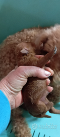 Bellissimi maschietti di barboncino Toy rossi, genitori entrambi miei visibili, i cuccioli ora hanno pochi giorni, saranno ceduti dopo i 65 giorni vaccinati e svermati, dopo accurata visita veterinaria.