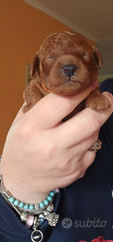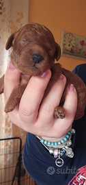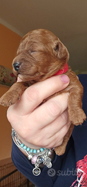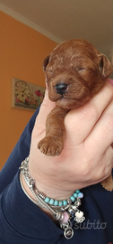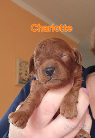 Disponibili alla prenotazione ancora una bellissima femminuccia di barboncino toy red, Charlotte . I cuccioli sono nati il 5 novembre e saranno disponibili dopo 70 giorni, completi di libretto sanitario, vaccini, microchip, sverminati, test feci e kit puppy. I genitori sono visibili entrambi con pedigree ENCI, test genetici ( esenti) e rotule certificati Fsa 00.