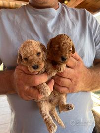 Cuccioli di barboncini toy red albicocca e champagne nati il 10febbraio da genitori entrambi visibili. Saranno disponibili con vaccino doppia sverminazione svezzati con libretto sanitario rilasciato dal veterinario dopo accurata visita cardiaca articolare e genitale. Microchip certificato di buona salute e analisi delle feci complete. Prenotabili. Tutto visibile. Abituati alla traversina igienica e alla compagnia di altri animali domestici.