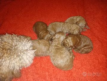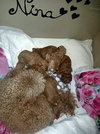 Cediamo cucciolata di 6 barboncini toy red mamma 23 cm papà 22 .