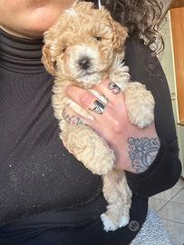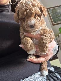 Salve vendo 2 barboncini Toy maschietti 1 albicocca con qualche macchiolina bianca e l'altro rosso con macchioline bianche entrambi figli di genitori Toy mamma 3kg papà 2,5